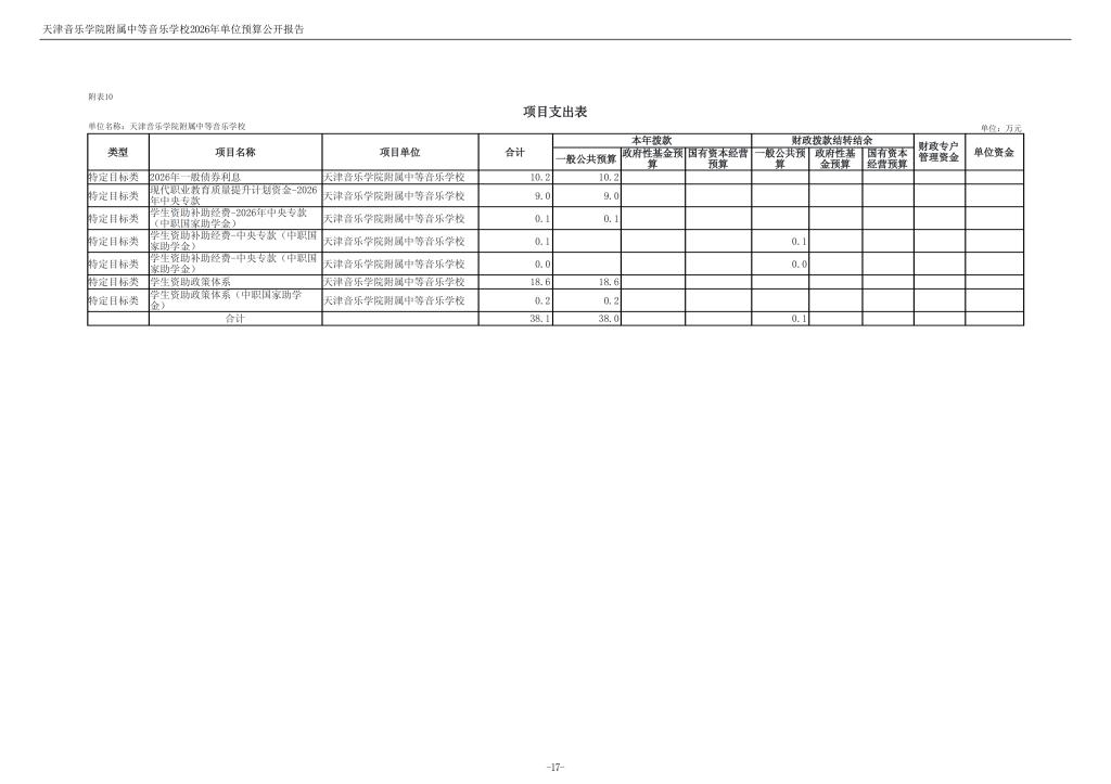 天津音乐学院附属中等音乐学校2026年度单位预算